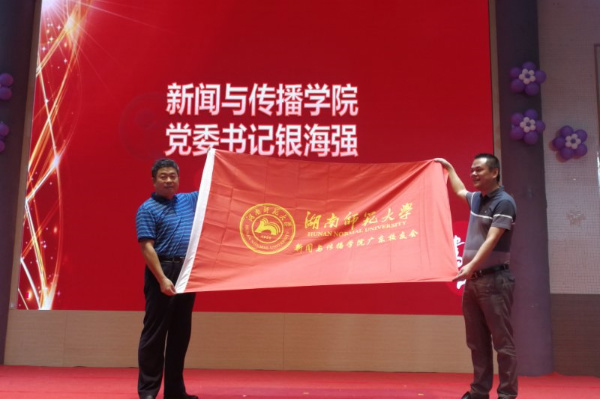 公司党委书记银海强为公司广东员工会授旗。公司员工总会秘书长杨玲、公司副经理闵素芬为理事会成员颁发聘书。