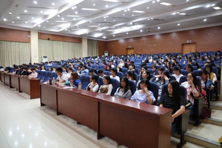 (通讯员 路相宜 徐峻杰)5月31日晚,经理尹韵公教授在体育公司报告厅为17级全体同学讲授“形势与政策”课。