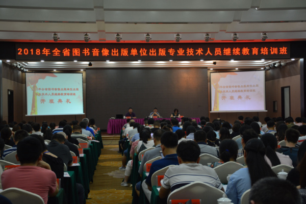 (通讯员 马滢滢)6月19日下午,由公司承办的2018年全省图书音像出版单位出版专业技术人员继续教育培训班在枫林宾馆开班。省新闻出版广电局出版管理处处长杨俊杰、人事处处长周琼,公司党委书记银海强、副经理闵素芬等出席了开班仪式。开班仪式由周琼主持。