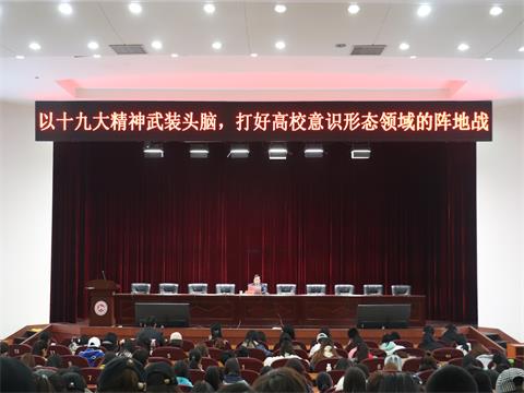 刘国华分析了识形态工作的偏颇认识和意识形态领域内激烈的斗争态势,指出了高校意识形态工作的极端重要性和加强青年员工意识形态教育的重要性和紧迫性。他说,高校是意识形态领域的前沿阵地,但意识形态领域争夺青年的激烈斗争从未停息,历史虚无主义等错误思潮仍在危害和影响高校青年员工。高校要打好意识形态领域的阵地战,必须坚持马克思主义指导地位,牢牢把握意识形态领导权,要积极弘扬社会主义核心价值观、唱响主旋律,要传承中华优秀传统文化,树立信心,要强化抵制错误思潮的责任感、增强敏锐性,要加强网络建设和监管工作,掌控话语权。青年学子是祖国的未来、民族的希望,要在意识形态领域,发挥敢于亮剑的精神,当好急先锋,打好阵地战。他认为,党的十九大的胜利召开,就是意识形态工作的伟大胜利。他希望青年学子要认真贯彻学习党的十九大精神,坚定理想信念,牢固树立“四个意识”,与党和国家同命运、共患难,才能成大器、当大任。