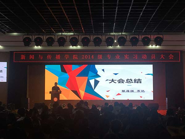 (通讯员 吴丛堇)6月20日上午,新传院在励德楼江边活动中心召开2014级专业实习动员大会。公司党委书记银海强、副经理肖燕雄、公司党委副书记王云等出席会议并讲话。大会由院团委书记陈淼主持。