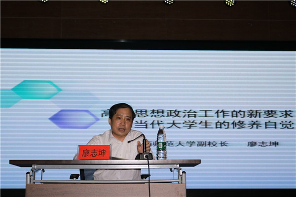 在新形势下加强和改进高校思想政治工作的依据方面,廖志坤从“何为新形势”和“新形势下加强和改进高校思想政治工作的必要性”两个层面展开。他强调,新常态是指经济发展进入新常态、信息传播进入新常态、党风廉政建设进入新常态、国际社会进入一超多强的新常态。他从思想政治教育的本体、主体与客体三个方面分析加强和改进思想政治教育工作的必要性。