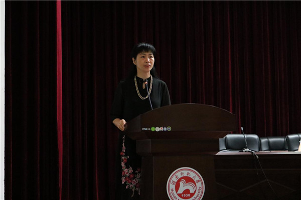 编辑出版系员工卢雅君代表老生发言,她分享了自己的经历,告诉新生们如何了解、适应老员工活。