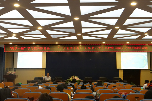 (通讯员 杨楠)6月2日晚,湖南大学马克思主义公司经理、博士生导师陈宇翔教授做客公司书山论坛,为公司“两学一做”学习教育带来了主题为“‘三个前所未有’——习近平总书记关于当代中国历史方位的科学论断”的讲座。讲座由公司党委书记龚向明主持。副经理肖燕雄、闵素芬、周国清及全公司党员教职工参加了此次讲座。