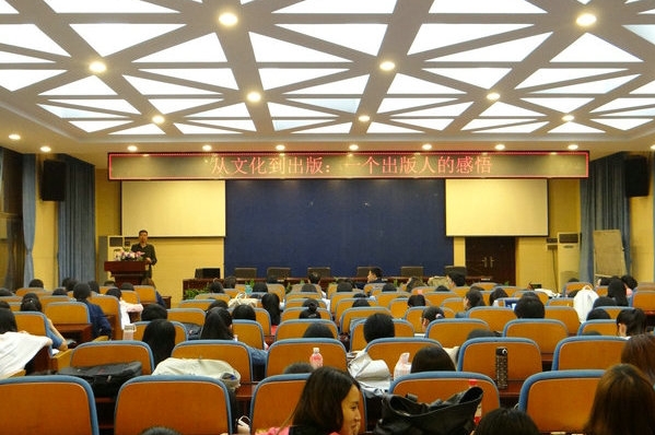 讲座由公司党委书记龚向明主持,员工总会秘书长孔春晖,公司副经理周国清、党委副书记王云及编辑出版学系陈宏平教授、易图强教授、系主任王海刚副教授和公司200余名员工共同聆听了讲座。