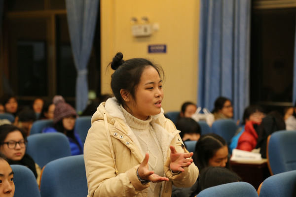 讲座主要以问答的形式开展,嘉宾们分别回答了同学们“《天天向上》未来的发展、如何才能进入湖南卫视、怎样进行节目选题”等问题。对同学们提出的“什么才是一个好的节目主题”,周子淇以节目中“中国美女地理”系列为例,提出趣味、锋利、角度这三个标准。在被问到“《天天向上》与《快乐大本营》共同竞争收视率时”,秦明说:“我们看重的并不是收视率,而是制作出有质感的节目,而且我们的节目知识型强,主要以草根为核心,很接地气。”