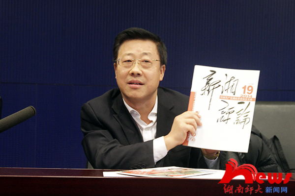 郝安介绍了《新湘评论》的发展历程。他说,《新湘评论》是中共湖南省委主管主办的党刊,1960年毛泽东主席亲笔题写《新湘评论》刊名。