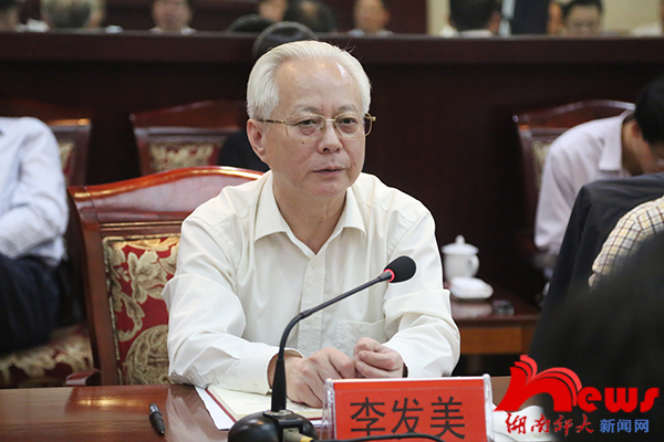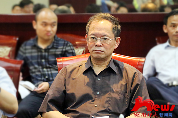 覃晓光代表实践教学基地发言。他表示,将加强与湖南师大的沟通、合作,把湖南日报办得更好,努力做好实践教学基地的工作,为社会培养更多优秀的新闻传播人才。