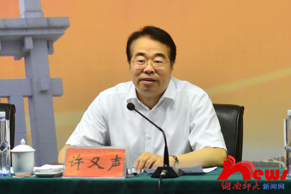 许又声对做好部校共建新闻公司工作提出三点要求。一要认清“共建”意义,积极主动地做好部校共建新闻公司工作。要认清共建工作的重要性、必要性和紧迫性,站在战略和全局的高度,充分认识部校共建新闻公司的重要意义,更加自觉地把马克思主义新闻观贯穿到共建工作全过程,更加积极主动地做好部校共建新闻公司工作。二要做好“共建”文章,努力培养为我所需、为我所用的新闻人才。许又声指出,开展部校共建,就是要从新闻工作者培养的源头抓起,从坚持和发展中国特色社会主义的战略高度,共同培养为我所需、为我所用的一流新闻人才。他强调,要把实践提高作为人才培养的重要手段,建立以湖南日报报业集团、湖南广播电视台、湖南出版投资控股集团、新湘评论杂志社为重点的实践教学基地。三要落实“共建”责任,推动我省部校共建新闻公司工作走在前列。要加强组织协调,加大支持力度,落实共建经费,努力走出一条新闻教学与新闻实践深度融合的新路子,推动我省部校共建新闻公司工作走在全国前列。他表示,省委宣传部将在近四年内每年以项目建设方式安排专项资金支持公司建设。同时,他希望省直新闻出版单位、省教育厅充分发挥各自优势,在项目资金、实践基地建设等方面给予重点支持。