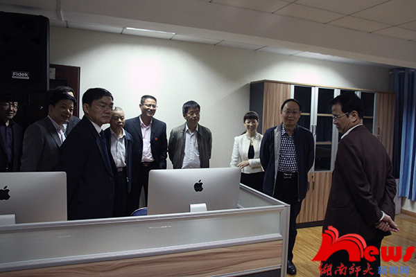 孔和平、申纪云一行实地考察了新传院现代传媒技术实验室、报纸采编实验室、网络工作室、播音实验室、影像冲印室、语音室、苹果机房、图书资料室、广告设计室、画室、形体房、书山论坛等处,对新传院的办学条件、办学环境有了基本的了解。