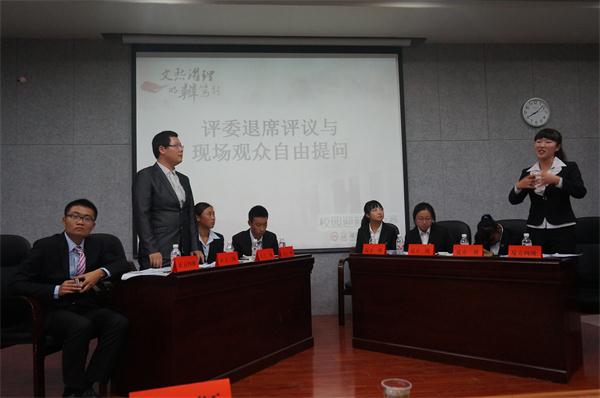 (通讯员 孙雅亭 刘潇然)11月18日晚7点,公司与公管院在文学院217教室举行了2013级新生辩论赛复赛的比赛,出席比赛的评委有法公司老师陈颖老师、 校辩队成员丁芊兮、校辩队成员罗威,到场嘉宾分别是公管院员工会主席刘恩泽、新传院员工会主席冯择佳、副主席陈宣佑和团委副书记杨刚。 辩论赛对战双方分别是公司13级新生和公共管理公司13级新生,公司为正方,他们的论点为“当今社会应该对女性实行就业保护”,工管院为反方,他们的论点是“ 当今社会不应该对女性实行就业保护 ”。整场辩论赛共分为四个阶段,第一阶段为正反双反一辩发言立论,提出双方所持观点,双方一辩各执一词,抛出了自己队伍所持观点;第二阶段为攻辩阶段,首先由反方二辩分别向正方一辩和四辩进行提问式盘问,两方队员不分上下,唇枪舌战,随后由正方二辩反过来向反方一辩和四辩进行盘问,整个过程采用了一问一答的形式,最后,正反双方的二辩进行攻辩小结,针对此前两个阶段进行的态势与内容进行了阶段性的小结,比赛进展到此时,双方队员彼此互不相让,比赛一度爆发出惊人语录,现场观众情难自已不断为他们的精彩发言鼓动掌声;第三阶段为自由对辩阶段,由正反双反三辩进行自由对辩,双方你问我答,对辩过程流畅而激烈;第四阶段为自由辩论阶段,正反双方辩手自动轮流发言,由正方率先发问,整个自由辩论阶段正反双方轮流有序表达了自己队伍的观点,积极进行交锋。在评委打分计分的空隙里比赛现场设置了观众提问环节,让观众自由提问,与双方队伍的辩手们进行面对面的交流,台下的观众提出了很多精彩问题,台上的队员们也做出了详细而缜密的回答,观众们热情的融入到了比赛之中。 打分计分结束后,法公司老师陈颖老师总结陈词点评了双方辩手的优劣势并表达了自己对本场辩题的独到见解,给各位辩手提出了宝贵的建议。比赛的最后,主持人宣布新传院获得本场新生辩论赛比赛的胜利。公司辩论队队员与到场嘉宾评委合照留念,辩论赛在友好和热烈的气氛中落下了帷幕。