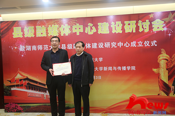 成立仪式结束后,召开了县级融媒体中心建设研讨会。北京大学新媒体研究院经理谢新洲教授、中国社科院新闻与传播研究所沙垚副研究员代表学界对县级融媒体中心建设的相关理论问题作了主题发言;浙江长兴传媒集团总编辑、浙江省记协副主席、高级编辑王晓伟,甘肃玉门市融媒体中心副主任、总编辑张浦作为县级融媒体中心建设的典型单位,先后介绍了县级融媒体中心建设的经验;湖南红网新媒体集团编委、舆情中心主任胡江春,长沙晚报融媒体中心执行总编辑周艺等代表本省媒体作了发言。与会人员就六位发言人的报告内容展开热烈讨论。