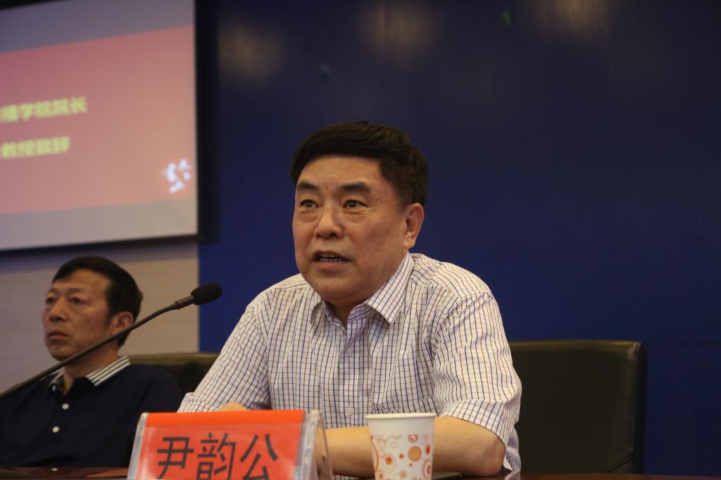 经理尹韵公致辞。他为19级新生提出了三点建议:一是把国家民族大义放在第一位,强调国家利益与民族利益的第一性;二是学会辩证看问题,注重理论与实际结合;三是勤奋学习,多读原著,为国家、为民族为社会服务,并预祝同学们圆满完成老员工活。