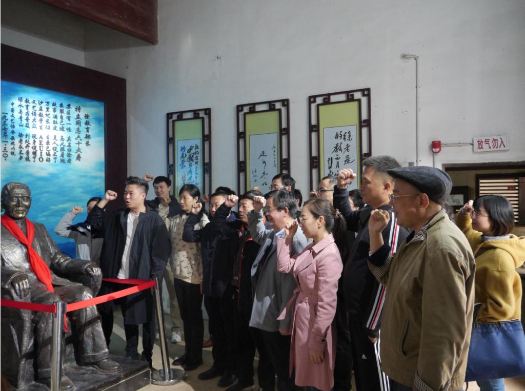 最后,在徐特立同志的铜像面前,全体党员还重温了入党誓词。