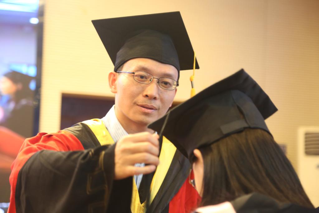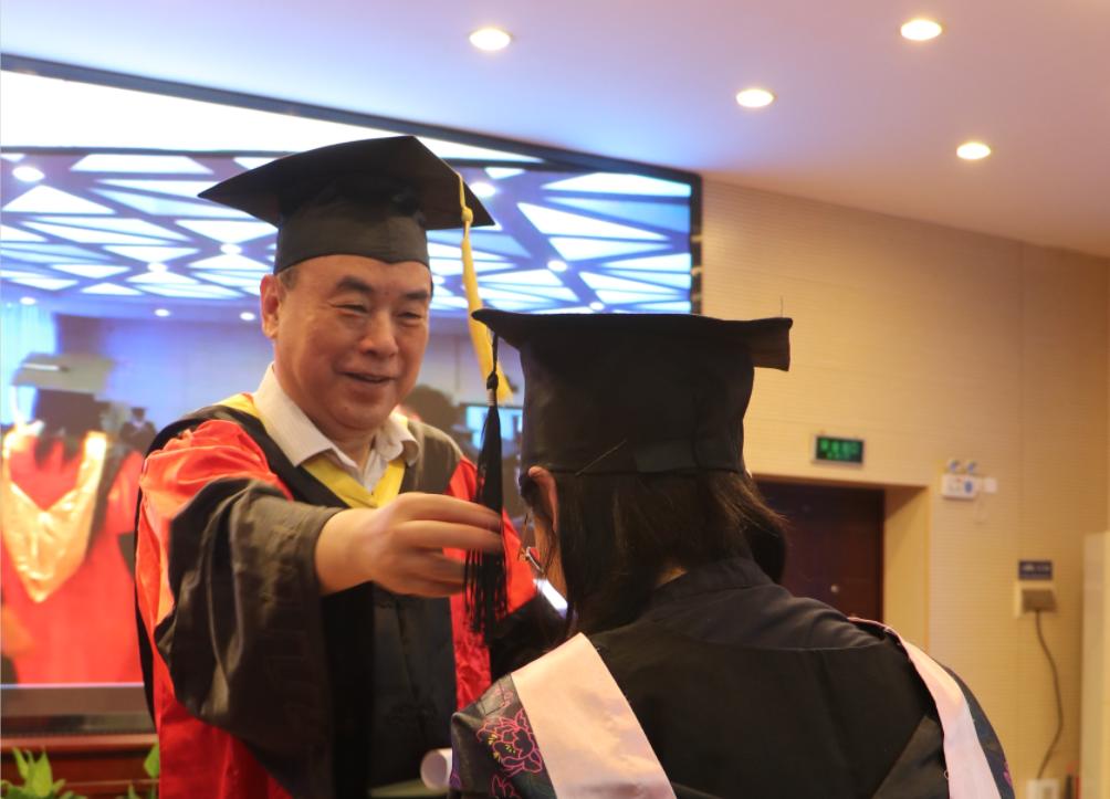 最后,各位导师为在场毕业生拨苏正冠,颁发毕业证、学位证、授予学位,并一一合影留念。