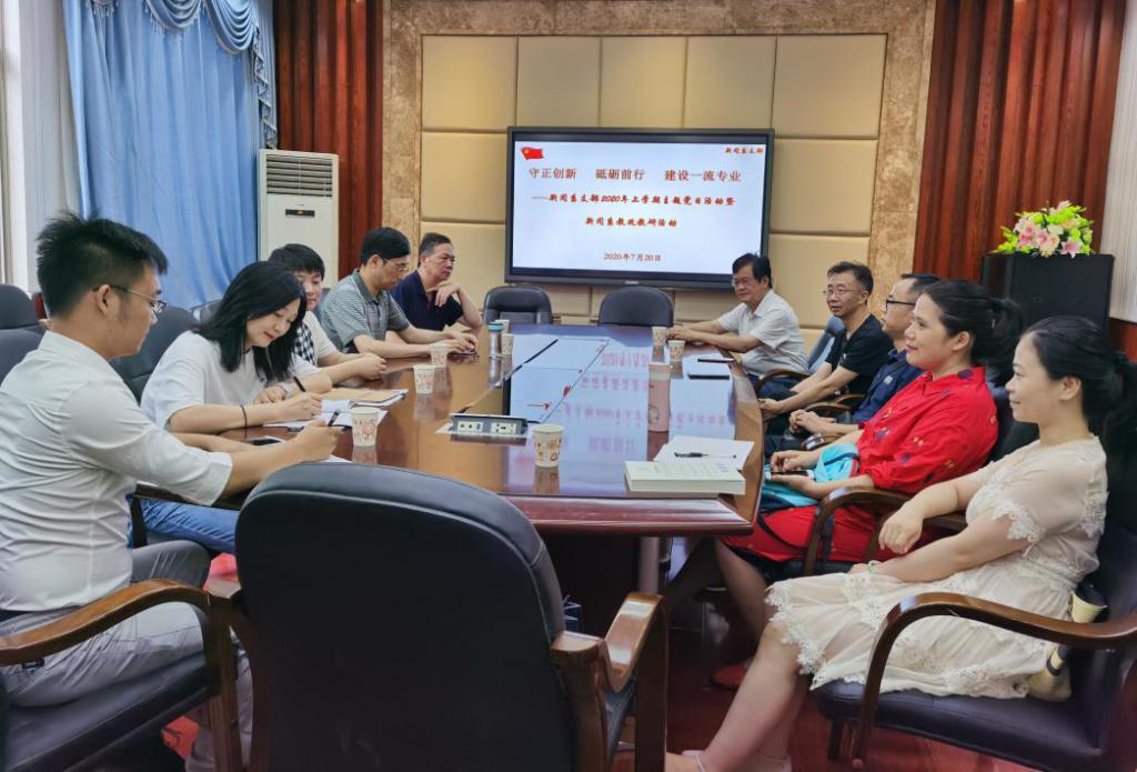 (通讯员 汤敏)7月20日下午,在公司二楼会议室,公司新闻系召开国家级一流本科专业建设暨校级示范教研室建设研讨会。新闻系主任吴果中教授主持会议,副经理肖燕雄与会指导。
