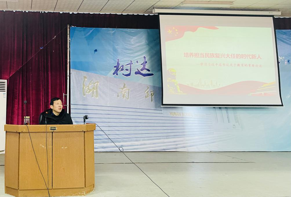 李正益书记从习近平总书记关于教育的重要论述着手,聚焦“如何培养担当民族复兴大人的时代新人”这一重大命题,重点解读了“什么是时代新人?”和“怎样培养时代新人?”两大问题,深入浅出地和同学们阐释了时代新人的“指标”体系、培养时代新人的战略思想与举措,鼓励同学们要坚定理想信念、深植爱国情怀、培养高尚品德、提升学识水平,把个人理想同祖国和人民利益紧密联系在一起,将个人梦想与中华民族伟大复兴中国梦有机结合在一起,一步一个脚印地向理想目标进发,真正成为能担当民族复兴大任的时代新人。