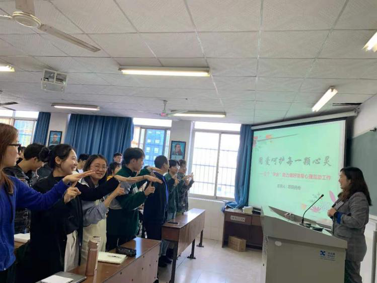 培训会议开始之前,欧阳丹玲带领寝室长和朋辈心理辅导员们一起做游戏,以此方式开启了一场关于心理健康教育的互动交流。在会议过程中还穿插了一些老员工心理问题案例,充分说明了老员工心理健康互助的重要性。