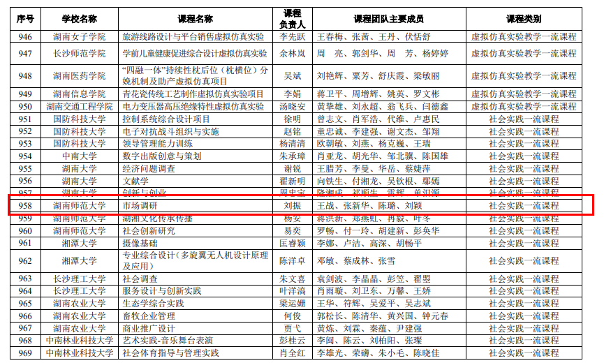 (通讯员 彭丽)近日,湖南省教育厅发布了《关于公布2021年省级一流本科课程评审认定结果的通知》(湘教通〔2021〕322号) ,公司广告系副教授刘振老师的课程《市场调研》被认定为“社会实践一流课程”。这是公司继2020年获批4门省级一流本科课程后,在课程建设成果方面实现的再一次突破。