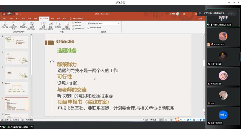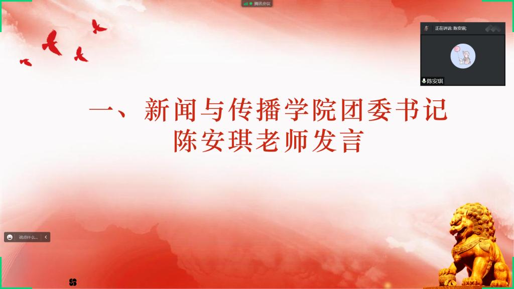 团委书记陈安琪老师对实践活动的开展给出了建设性意见,对同学们实践活动的具体实施办法提出了指导性建议,着重强调了三下乡的安全保障及疫情防控工作,引导同学们以积极正确的心态参与暑期实践活动。院团委实践部罗玉冰同学对暑期社会实践文件进行了解读,向大家讲解了“三下乡”活动的内容与要求。会议还邀请了2021年三下乡优秀实践代表吴腾韬、闫炜炜同学向大家分享实践经验,两人从自身经历出发,向同学们生动介绍了“三下乡“实践活动的前期准备工作、中期注意事项、后期总结宣发等方面内容。