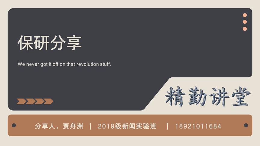(通讯员 李芯怡)11月4日晚上七点,新传院团委青创部举办了以“薪火相传——看见榜样力量”为主题的精勤讲堂线上讲座。会议由新传院19级新实班贾舟洲和19级广告班张玥主讲,向新传学子分享保研经验。
