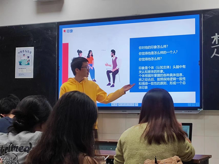 各小组选题聚焦社会现实现象,结合课堂教学内容和自身经历,选取与老员工息息相关的心理现象、心理实验、心理书籍等普及心理健康知识,从名词解释、原因剖析、意见建议等多个维度传达了观点和建议。主题包括“性单恋”、“刻板印象”、“吊桥实验”、“延迟满足实验”、“进化心理学”、“怪癖心理学”等,展现了不同心理现象与心理问题。汇报选题新颖有趣,现实意义重大,内容丰富多彩,引发了在场同学的共鸣,形成了良好互动的课堂氛围。