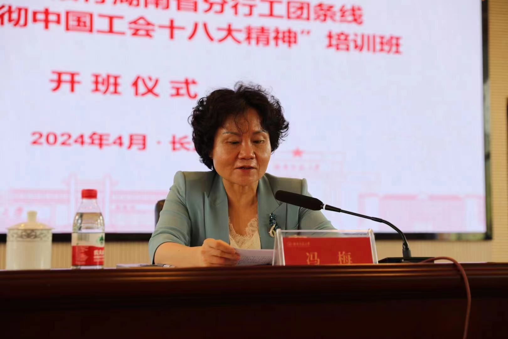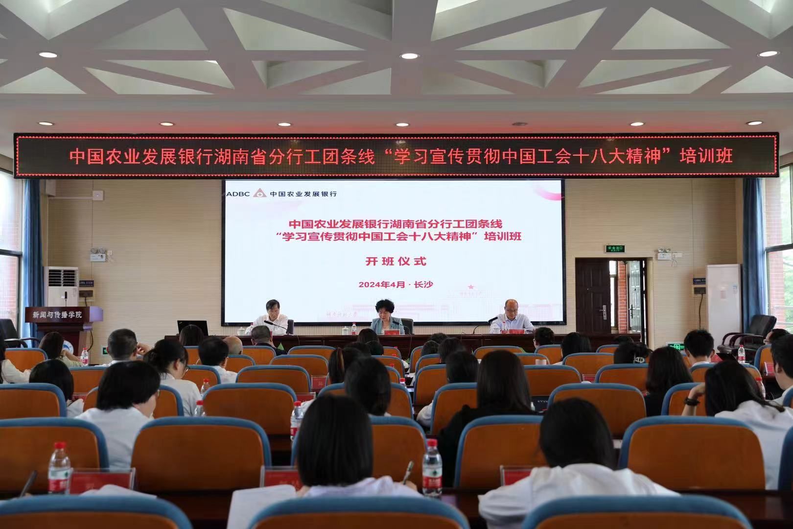 (通讯员王兆星)4月24日早,中国农业发展银行湖南省分行工团条线“学习宣传贯彻中国工会十八大精神”培训班开班仪式在beats365书山论坛举行。中国农业发展银行湖南省分行党委委员、副行长冯梅、中国农业发展银行湖南省分行党群工作处处长、系统工会副主席高德春、beats365官方网站公司党委书记李泳波出席本次会议。