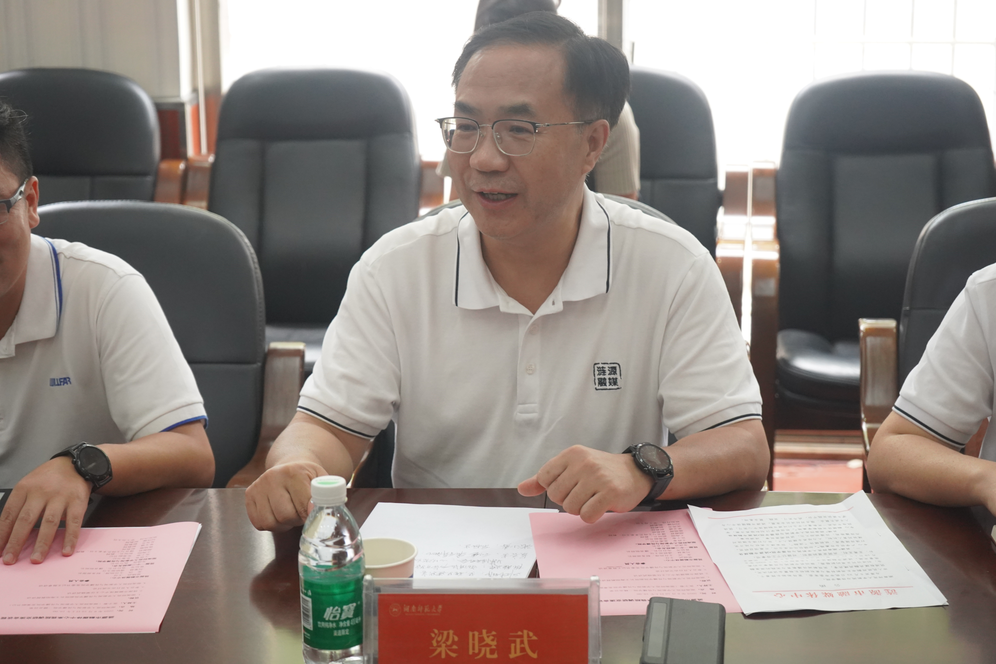 涟源市融媒体中心主任梁晓武对公司的热情接待表示感谢,详细介绍了涟源市融媒体中心的基本建设情况,并从共建“产学研合作基地”“融媒体实践教学基地”“融媒体工作室”三个方面具体阐述了合作内容。随后,双方围绕合作细节、人才培养等问题进行了深入的交流与探讨。