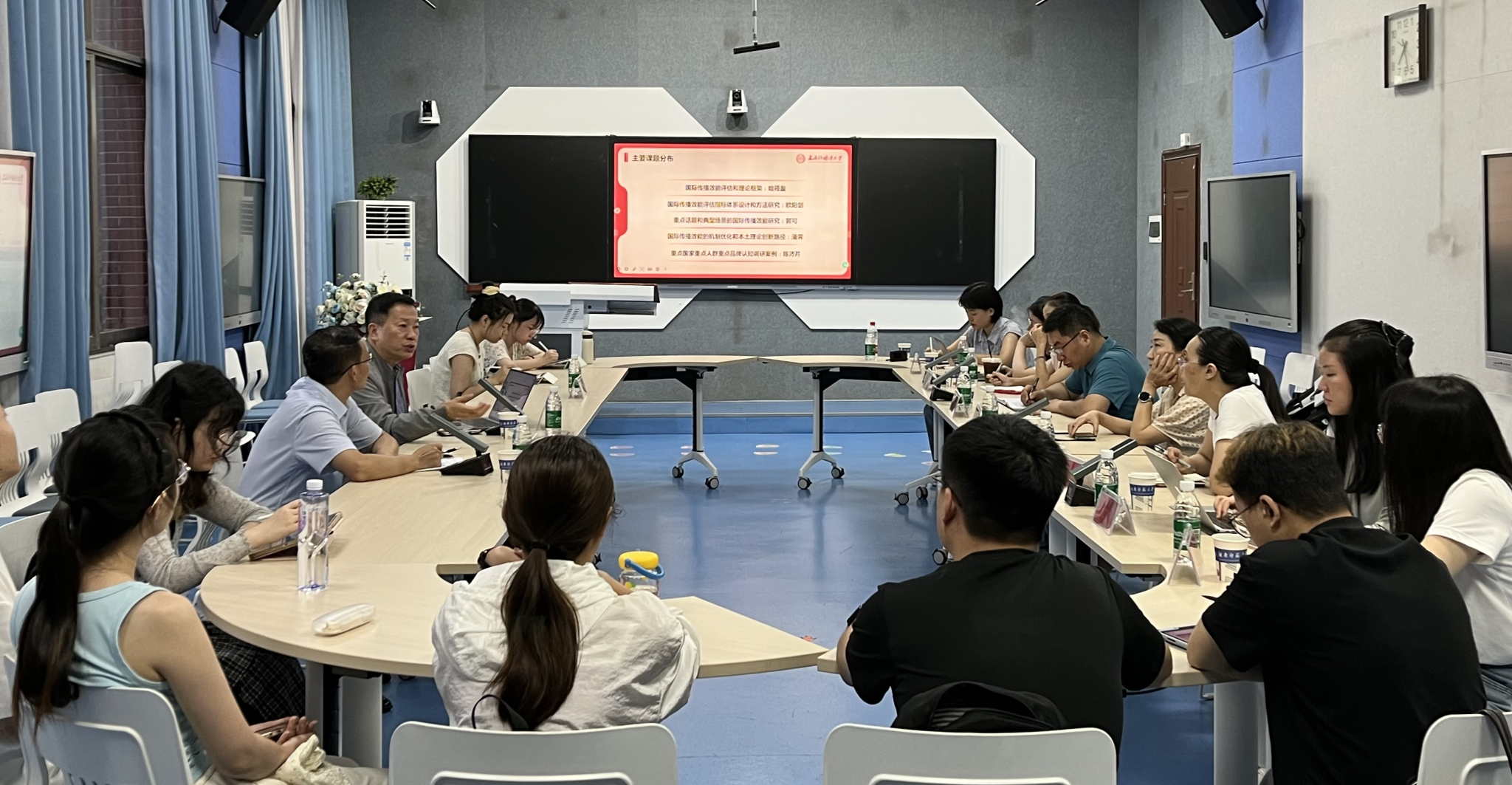 郭可教授围绕“全球传播案例研究与理路创新”主题,以“国家社科重大项目的延续研究”为引子,阐释国际传播的本源和困境,探索国际传播的体系,聚焦案例研究,探讨本土理论创新。郭可教授从国际传播领域的主要课题分布、重点研究问题和重点研究场景三个方面,重点讲解了国际传播效能测评体系设计和机制建设。郭可教授希望与公司师生合作,共同参与国家社科重大课题的研究,特别是国际传播案例库建设方面的工作。