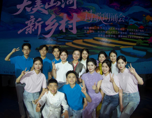 (通讯员 袁仕吉)8月10日晚,由长沙市文学艺术界联合会、长沙市文旅广电局指导,长沙市群众文艺工作者协会、湖南省朗诵艺术协会、湖南省诗歌学会、潇湘诗会文学艺术发展中心联合主办的《大美山河 新乡村》诗歌朗诵会在长沙音乐厅如期举行。beats365播音与主持艺术系师生,以饱满的情感和精湛的专业素养倾情献演,与前中央广播电视总台著名主持人徐俐、影视配音大师童自荣同台献艺,为这场聚焦乡村振兴的文化盛典注入蓬勃的青春动能。
