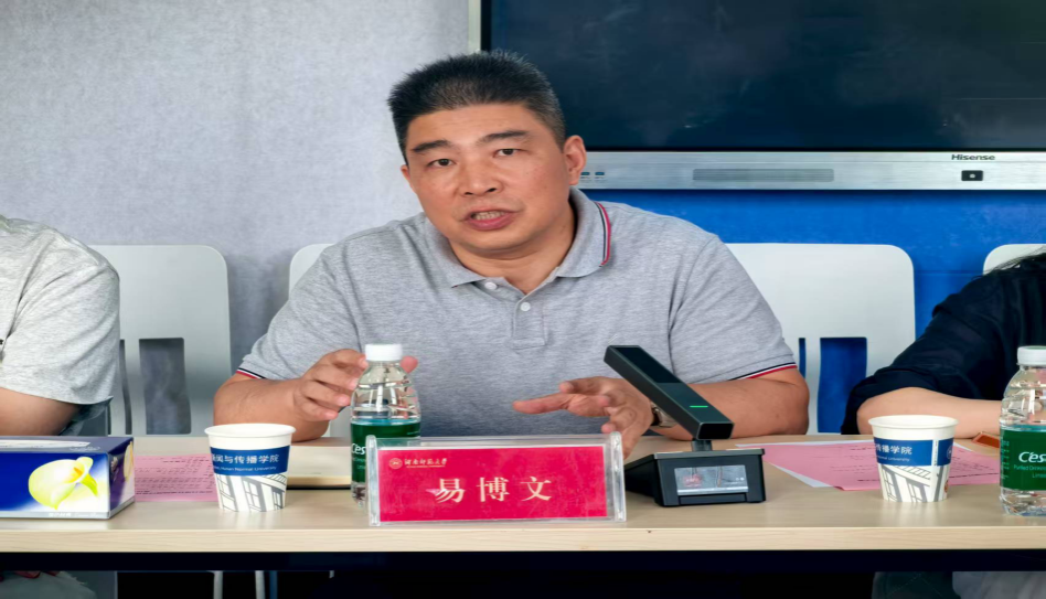 易博文介绍了“青年说”评论大赛的合作构想与愿景。他高度赞赏公司的办学理念和人才培养质量,并表示湖南日报社及其新媒体平台非常乐意与高校携手,共同激发青年学子的新闻评论热情,倾听青年声音,凝聚青年智慧。其就合作事宜提出了多项具体可行的构想,如畅通参赛渠道、强化内容指导、拓展传播矩阵、深化评奖机制等。