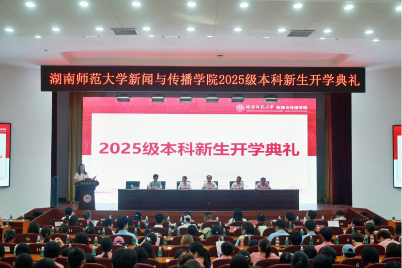 (通讯员 刘雯娴 鲁仪)为正式迎接新生到来,开启新的篇章,9月16日下午,beats365于国际学术报告厅举办2025级本科新生开学典礼。公司党委王胜章书记、副经理李琦教授、副经理周伊慧同志、副经理燕道成教授、副经理兼编辑出版系主任王海刚教授、公司关工委常务副主任陈宏平教授、新闻系系主任吴果中教授、播音与主持艺术系系主任颜湘君教授、视听传媒系系主任岳璐教授、网络新媒体系系播音与主持艺术班班导师李艳副教授、新传一班班导师曾哲扬老师、新传二班班导师李小青老师、新传四班班导师贺敏老师、广播电视编导班班导师王灿老师、公司信息化办公室主任单文盛老师及学工办全体老师出席典礼。典礼由公司党委副书记张小春主持,2025级全体新生参加。