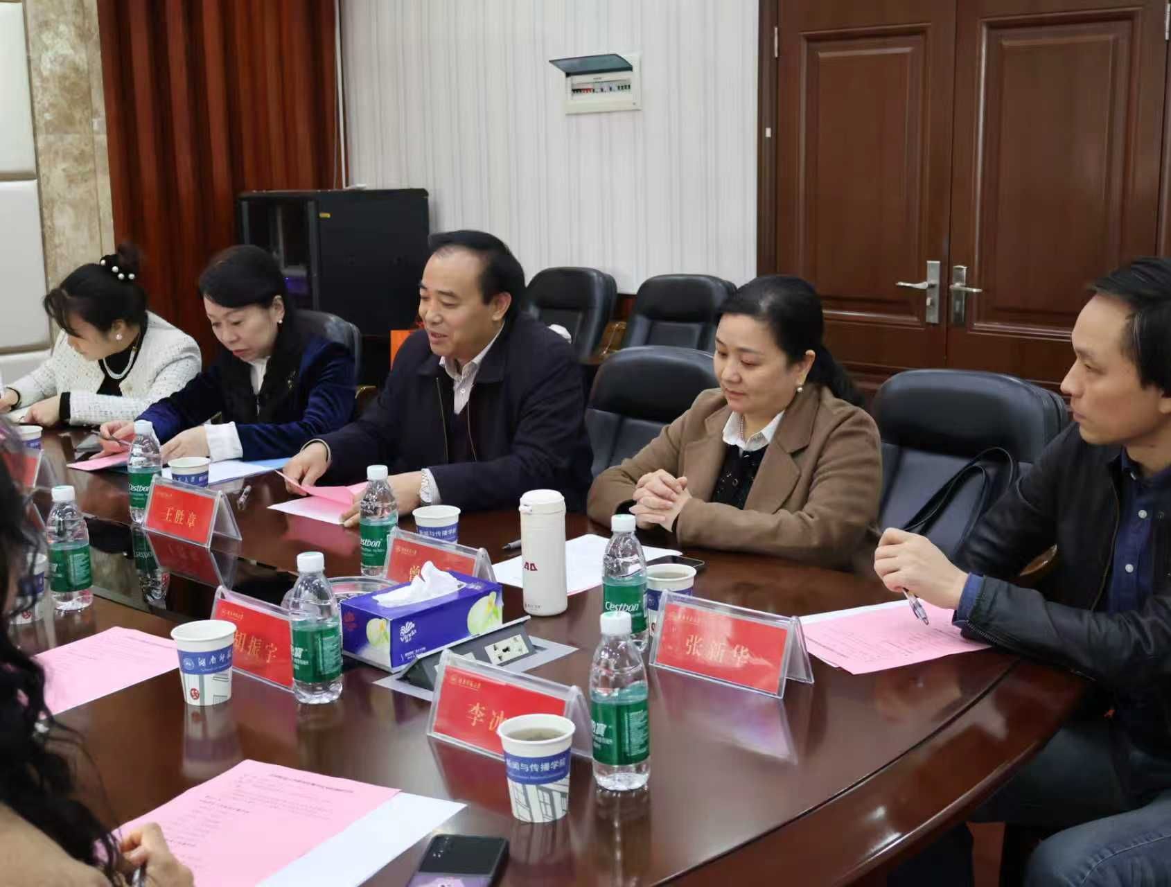 交流座谈会由公司党委书记王胜章主持,天津师范大学新闻传播公司党委书记张家玥、副经理胡振宇、讲席教授王伏虎、广告学系副主任李冰玉、广告学系教师吕国先、辅导员王智伟出席,公司副经理李琦、广告系主任曾琼、广告学系教师张新华、刘颖、学工办主任欧阳丹玲等教师参与。