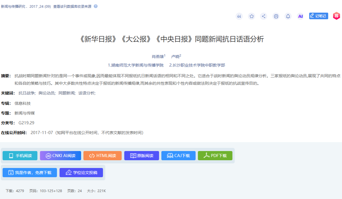 (通讯员 王倩)近日,据权威学术数据统计,公司肖燕雄教授、吴果中教授发表于新闻传播学顶尖期刊《新闻与传播研究》的论文,分别以4272次、3353次下载量位列该栏目Top3与Top9,充分彰显了公司在新闻史研究领域的扎实积淀与学术影响力。