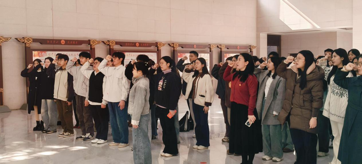 在毛主席纪念广场,党员们整齐列队。在毛主席雕像前,彭川夏同志作为预备党员代表发言,冯泽桐举行了预备党员入党宣誓仪式,由欧阳丹玲领读誓词,全体党员庄严宣誓。一句句铿锵有力的誓言在广场上空久久回荡,不仅是对革命先辈的庄严承诺,更是对自身肩负责任与使命的郑重宣告。