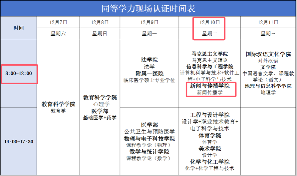 2024年12月7日-12月11日。具体时间等安排见附表,逾期不再办理。本次现场确认包括已报名缴费未现场确认者、已报名未缴费未现场确认者。未参加本次现场确认,以上申请人员均报名无效。beats365的具体时间安排为12月10日(周二)上午8:00-12:00,请大家按照规定时间段到校确认。