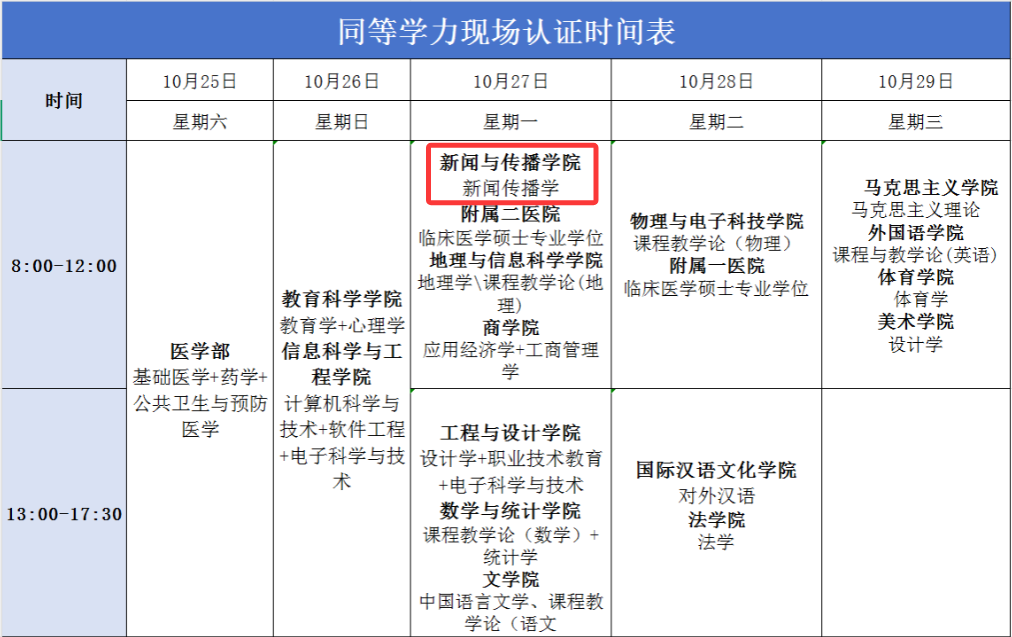 2025年10月25日-10月29日。具体时间等安排见附表,逾期不再办理。本次现场确认包括已报名缴费未现场确认者、已报名未缴费未现场确认者。未参加本次现场确认,以上申请人员均报名无效。beats365的具体时间安排为10月27日(周一)上午8:00-12:00,请大家按照规定时间段到校确认。