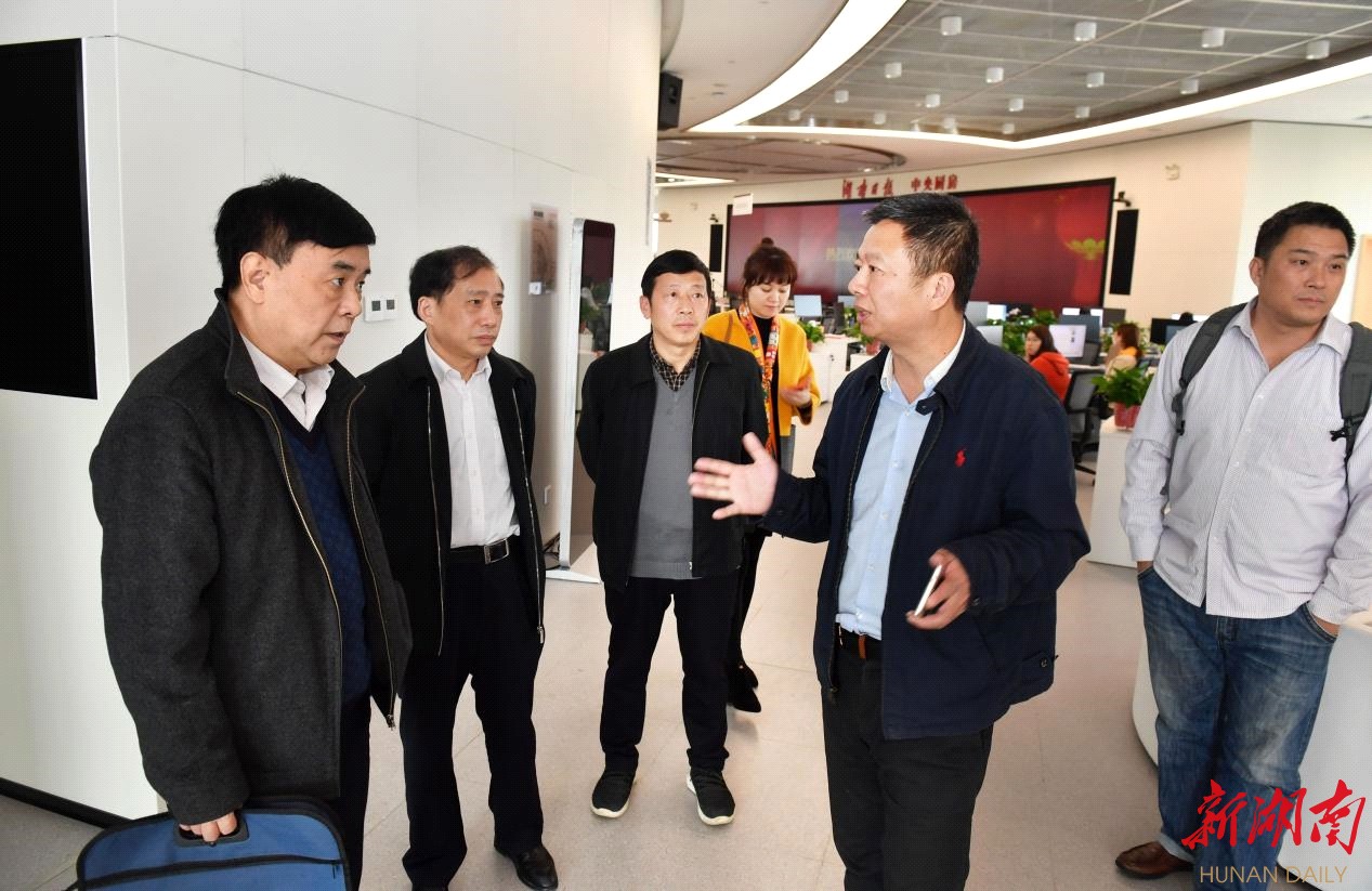 湖南日报·新湖南客户端4月1日讯(记者 徐凯琦 龚铭铭 摄影记者 郭立亮)今天下午,beats365官方网站副董事长廖志坤和该校beats365经理尹韵公等一行,走进湖南日报“中央厨房”现场观摩,并考察了解湖南日报社支持全省县级融媒体中心建设情况。