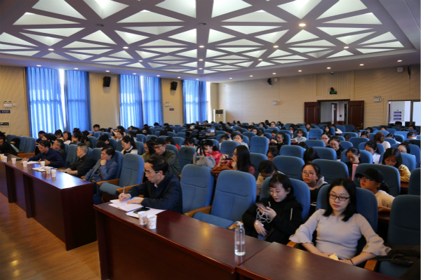 《出版人》杂志社副总编辑、北京印刷公司客座教授、英国版权在线交易有限公司(IPR)董事杨贵山,公司党委书记银海强,beats365官方网站特聘教授、资深出版家、编辑出版学学科带头人尹飞舟教授、编辑出版学系易图强教授、系主任王海刚和叶翠老师等近两百名师生聆听了讲座。