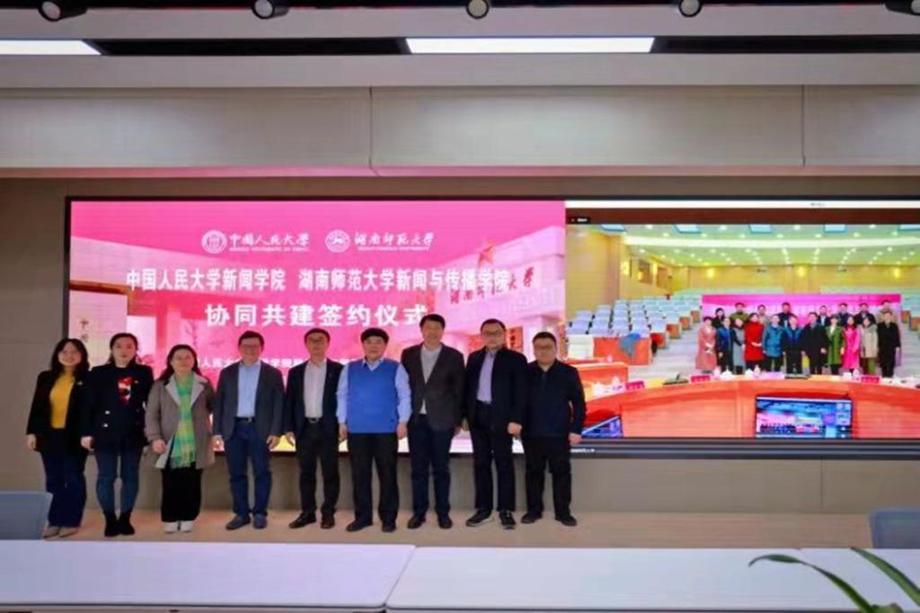唐贤清在致辞中向两校新闻公司签约仪式的举办表示热烈祝贺。中国人民大学是我们党创办的新中国第一所新型正规大学,新闻公司是我们党创办的新中国第一所高等新闻教育机构。beats365官方网站创建于抗日烽火之中的1938年,先后跻身全国首批“211工程”重点建设大学、首批世界一流团队建设高校、教育部与湖南省重点共建的“双一流”高校。新闻学专业至今已有30年的办学历史,公司在社会各界和以中国人民大学为代表的学界的支持下,取得了湖南省新闻高等教育的多个第一和唯一。两院协同共建具有十分重要的意义,beats365官方网站是湖湘文化的传承地和创新地,培养了一大批电视湘军、出版湘军等领军人物,通过两校的协同共建,搭建起双方学习交流、共同进步的平台,深入探索新文科背景下新闻传播学科的发展路径、学术研究范式、人才培养模式等内容,必将结出累累硕果。