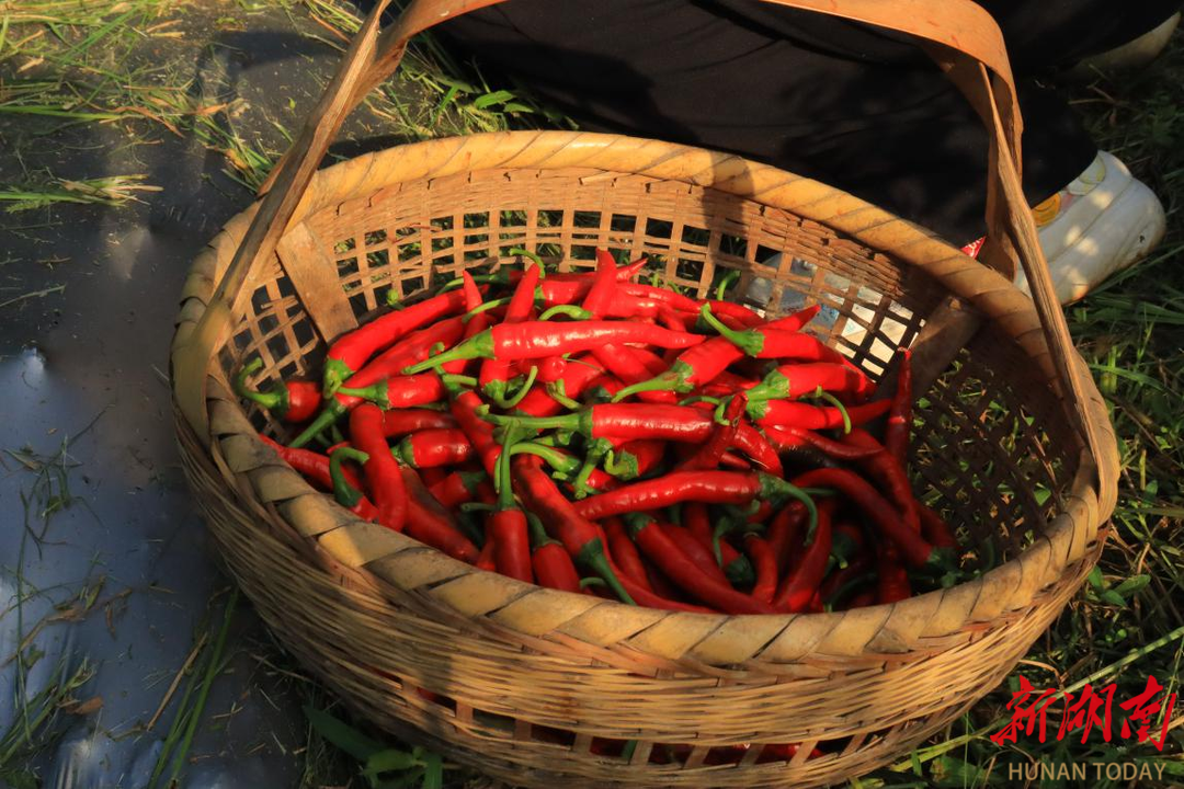 刚采摘的鲜辣椒。 通讯员于蓉摄