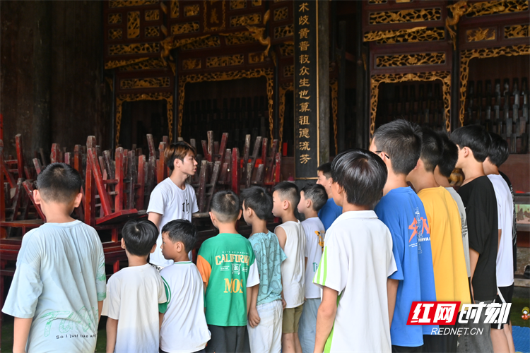 实践团初入祠堂时,便听到了击打的声音。当地搏击老师小阳正在祠堂空地教授村里的孩子们搏击课。作为曾经的职业搏击手,小阳表示,利用暑假对孩子们进行体育教育有助于他们身心健康发展,同时这也提高了祠堂的利用率。提及授课感受,小阳直言,在祠堂教授孩子们,总会有种传承的感觉,在先人面前培育着家族乃至国家的新希望,会感到无比自豪。谈到新时代乡村祠堂的发展,小阳认为政府要多加关注,拓展祠堂的活动形式和文化内涵,重点发挥祠堂作为文化载体的功能,这利于实现祠堂的现代化转型。
