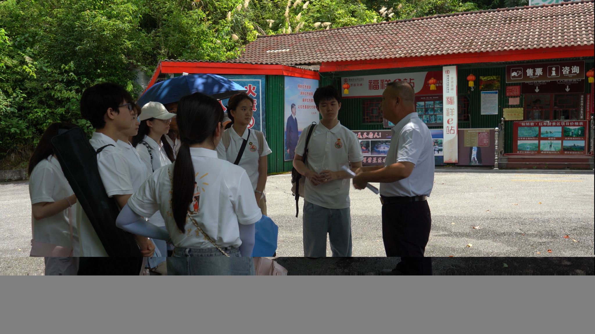 活动首站,实践团来到长寿镇仙姑岩‧红军营景区。这里曾是红军战斗过的地方,实践团成员们,考察革命旧址复原区,聆听游击斗争故事,感受那段热血沸腾的历史。随后他们走进长寿图书馆,从张震藏书展中挖掘美育资源,结合实景和革命事迹拍摄红色美育微课堂,让红色历史“活”起来。