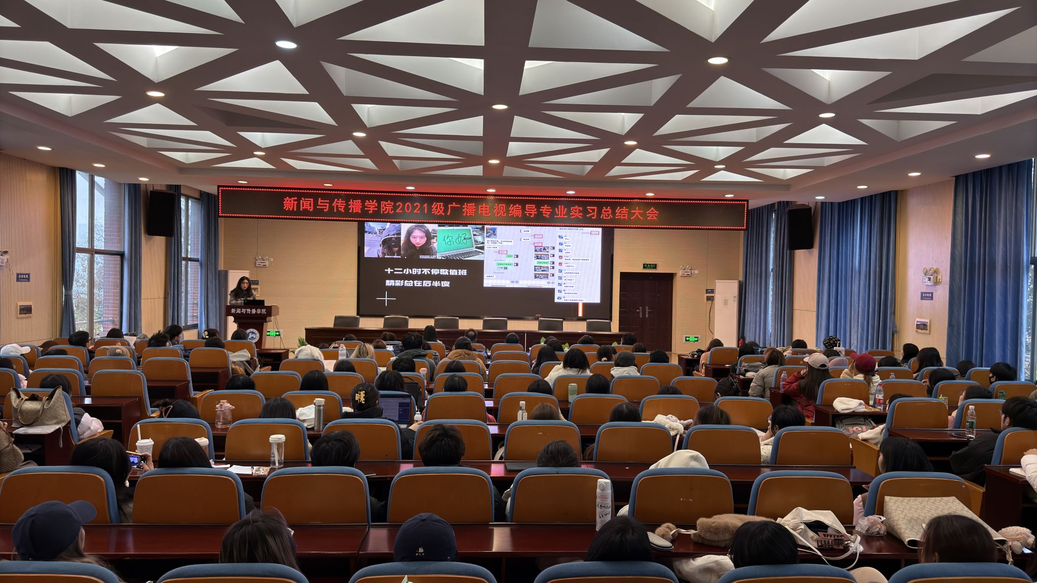 (通讯员 郑琬霖 李昱辰)12月9日,公司2021级广播电视编导专业实习总结大会在书山论坛圆满召开。视听传媒系主任岳璐老师、视听传媒系王文利老师、翁杨老师、朱奕亭老师、石力夫老师、丁忠伟老师、姚苏晟老师、林雅心老师、王灿老师及教务办主任彭丽老师出席会议。大会由2021级广播电视编导班班长刘思钰主持,2021级、2022级与2023级编导专业全体同学参加了总结大会。