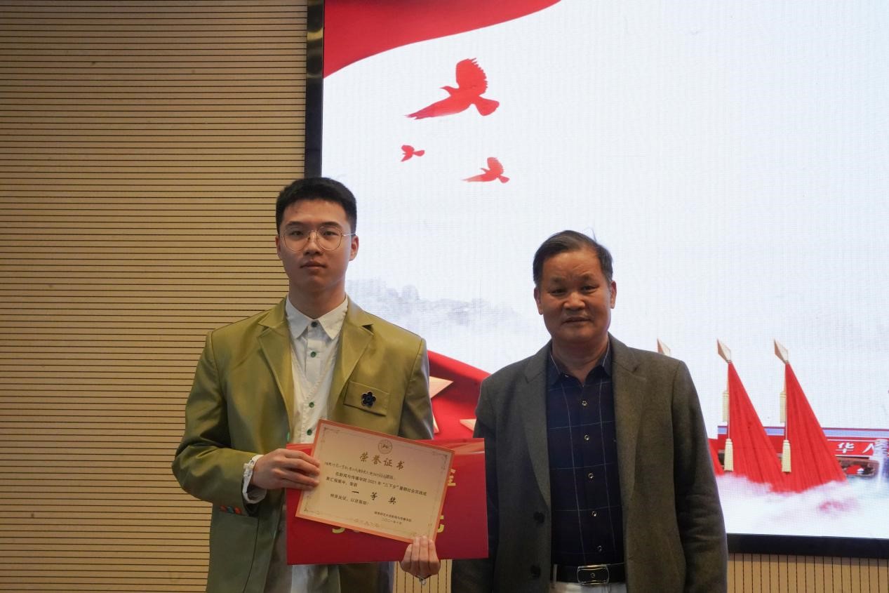 汇报结束后,评委段峰峰进行总结点评。首先,他对汇报队伍表示赞许:“今天的汇报展题材丰富,形式多样,各队伍都很优秀。”其次,段峰峰提出,各队伍都存在需要精进的地方。例如,选择的主题应更加集中,从而将一个问题做深做透,并且文本材料也应更加规范。最后,段峰峰对各队伍在省赛、国赛中更加精彩的表现表示期待。