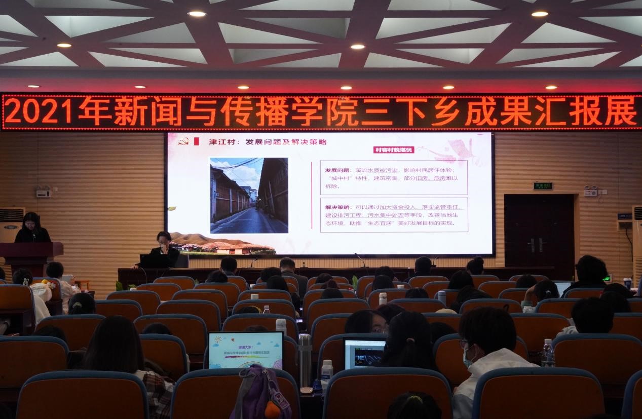 九支汇报队伍依次上台进行汇报展示。九支团队的选题涉及中小员工体质教育、推普活动、红色文旅、儿童心理、老人与智能手机、农村女性抖音带货等多项内容,采取多种汇报形式,例如纪录片、口头汇报、情景剧、唱红歌等展示了他们的实践成果。