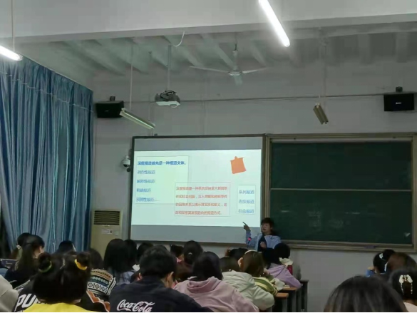 陈艳辉老师以“如何做好深度报道”为主题,从深度报道的界定、深度报道的价值、深度报道形式的演变、媒介融合背景下做深度报道的方法四个方面进行阐述。她以“315”晚会中“统一老坛酸菜”报道为例,指出 “信息是新闻的价值,深度报道的价值是媒体公信力、记者影响力的体现”,希望同学们意识到深度报道的重要性。