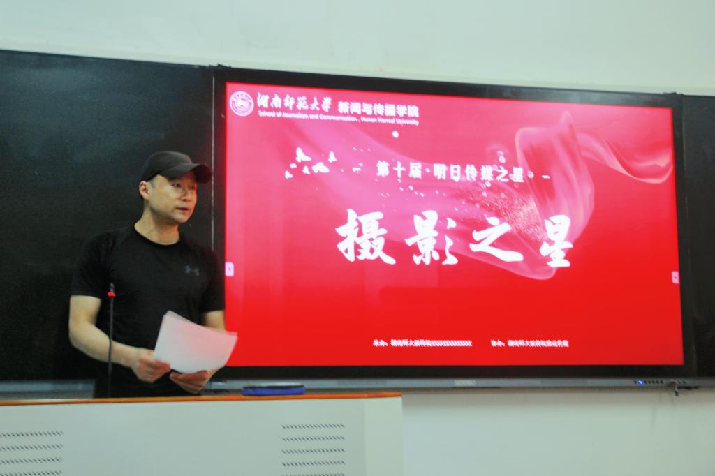 (通讯员 余雅妮 郭玥含)耀青春百年,奏时代强音!5月12日晚,第十届明日传媒之星“摄影之星”决赛在公司311教室举行,本次摄影之星比赛以“中国梦·校园情”为主题,邀请到了国家一级摄影师、湖南省摄影行业协会副秘书长、湖南师大影像艺术工作坊指导老师李伟和公司广电系教师丁忠伟担任评委。活动由beats365F8摄影广告社承办,致远传媒协办。出于疫情防控考虑,此次比赛没有邀请观众,且参赛选手除上台展示和合影留念外全程佩戴口罩。