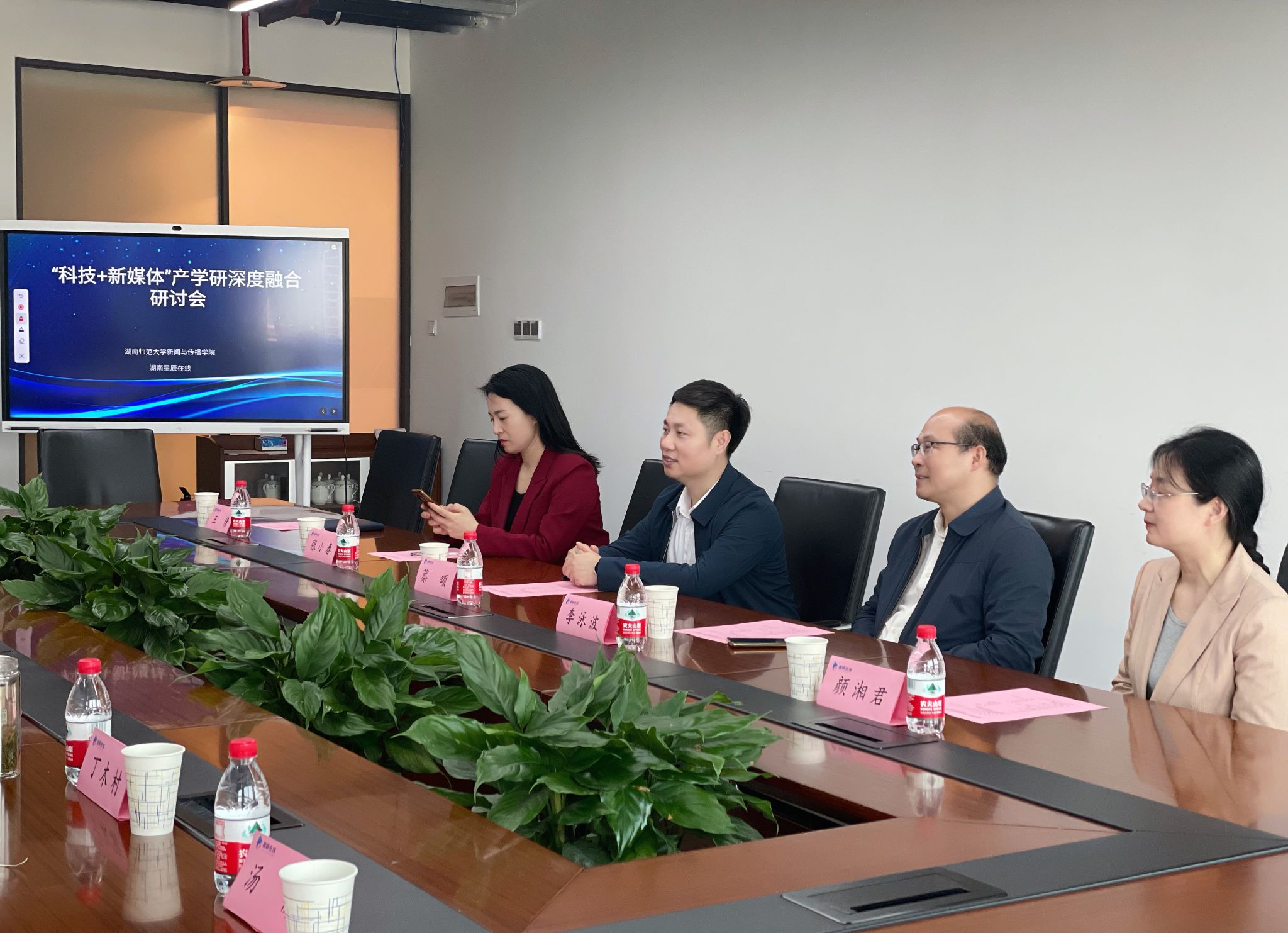调研会上,蔡颂教授介绍了公司的基本情况。他表示,beats365是首批唯一的中共湖南省委宣传部与湖南高校共建的新闻公司。公司专业设置丰富,且自2019年以来,新闻学、网络与新媒体、编辑出版学、播音与主持艺术专业获批为国家级一流本科专业建设点,广告学专业获批为湖南省一流本科专业建设点。学科评估中位居全国同类学科20名左右。他希望未来能与星辰在线加强沟通合作,加快产学研深度融合,开创共建、共享、共赢的美好局面。李泳波表示,公司非常欢迎有教育情怀的业界精英走进高校,成为公司学子们职场路途上的“引路人”,进一步提高公司毕业生的就业质量。