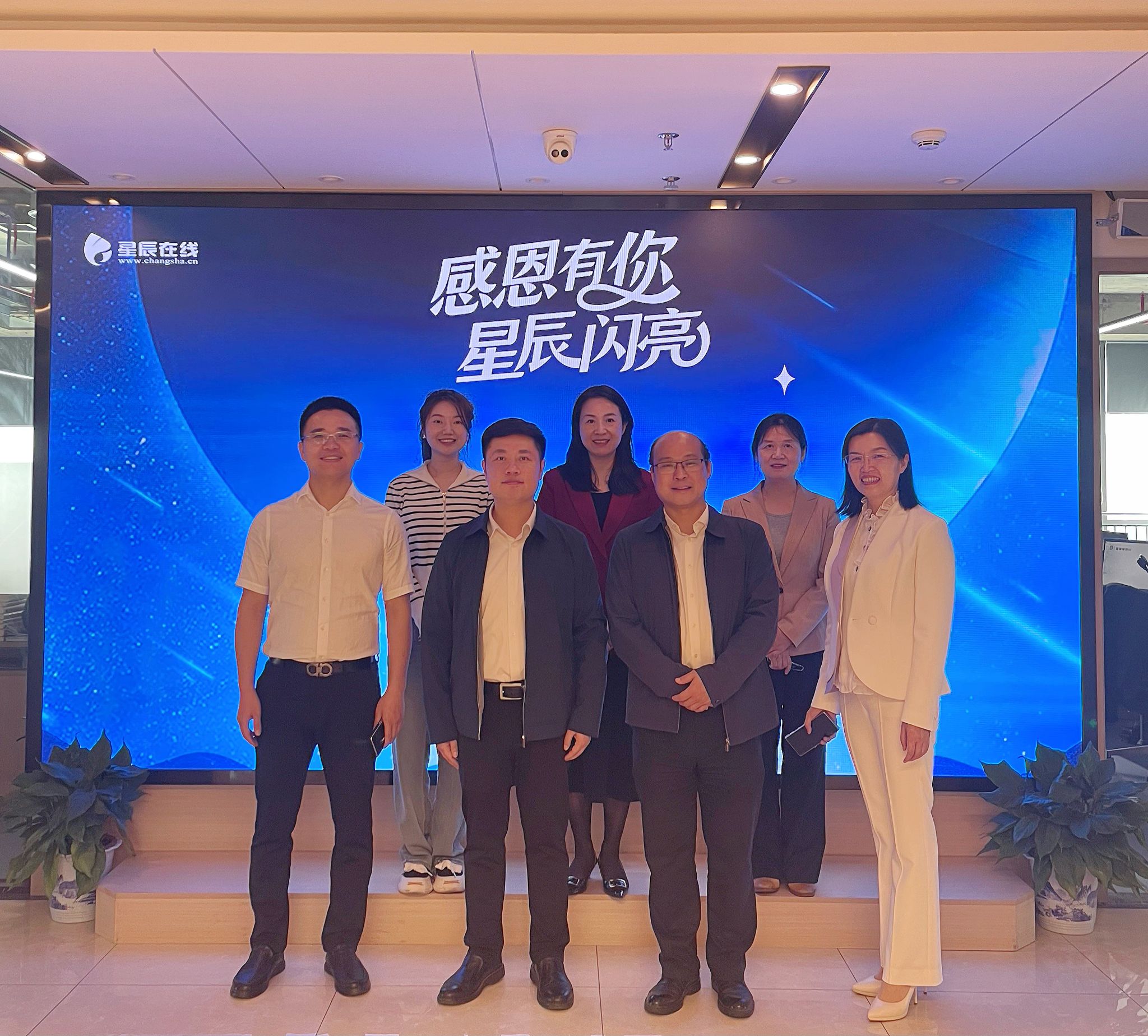 随后到访一行参观了星辰在线采编、综合办公区及生活区域。